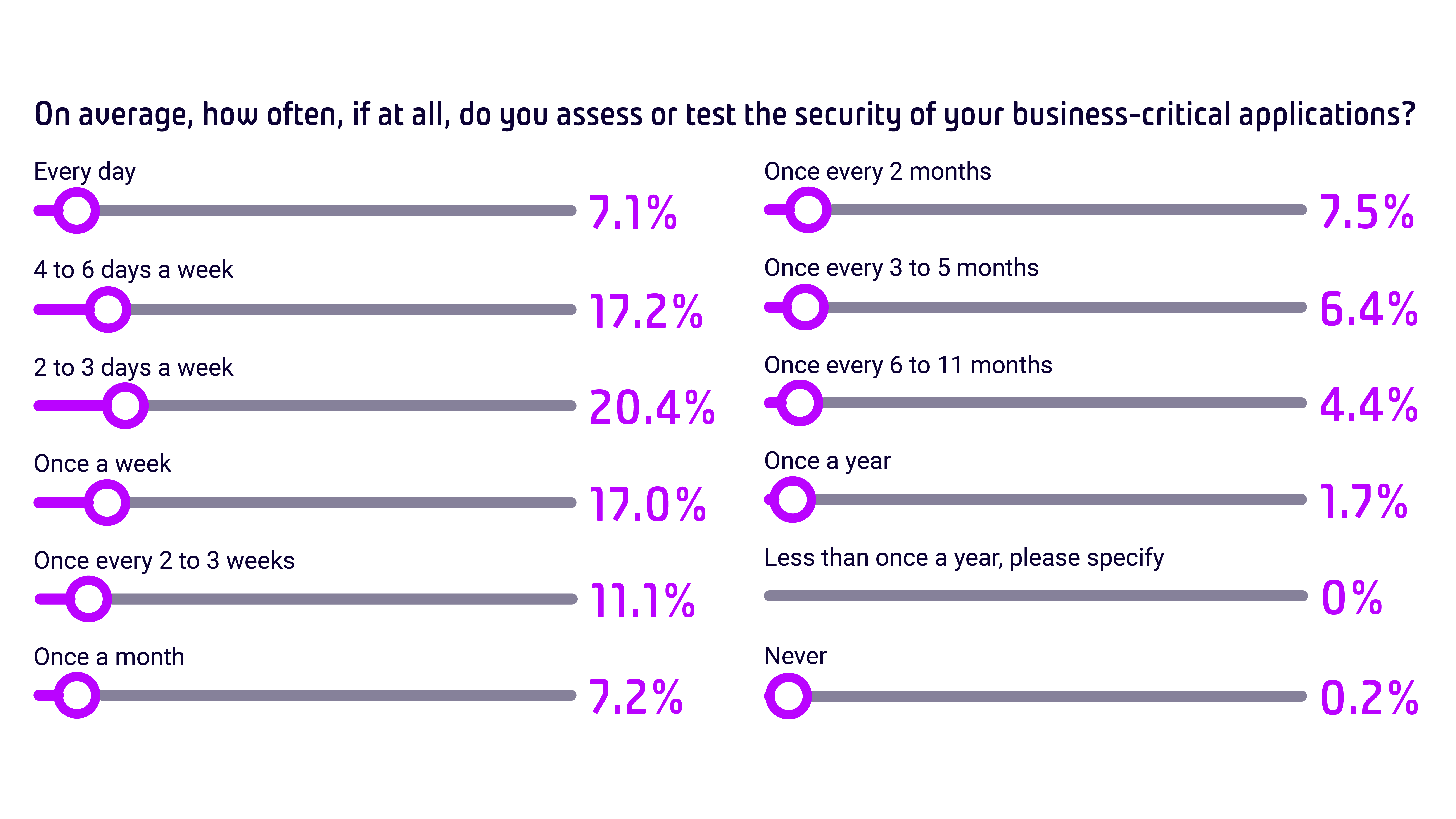 In the DevSecOps report survey, respondents were asked how long it takes their organization to patch/resolve critical security risks/vulnerabilities for applications already deployed/in use. As shown below, nearly three-quarters noted that their organizations can take anywhere from two weeks to a month to patch known critical vulnerabilities.