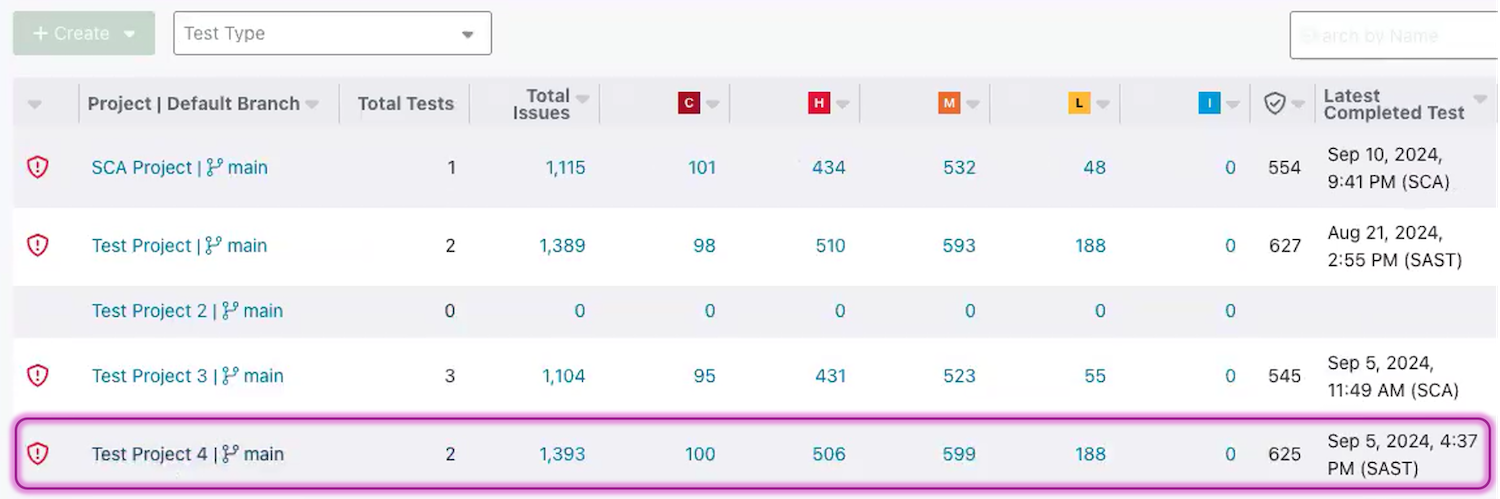 Currently, all results are displayed, which can be a little overwhelming if you’re trying to see if any new issues were introduced. So let’s compare it against the “Test Project 4” main branch.