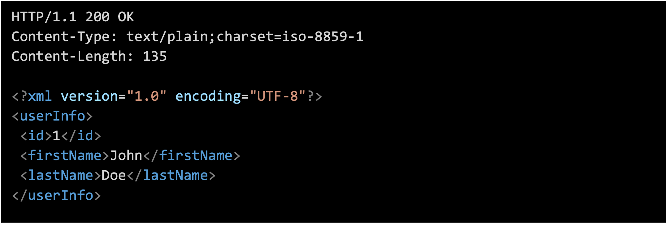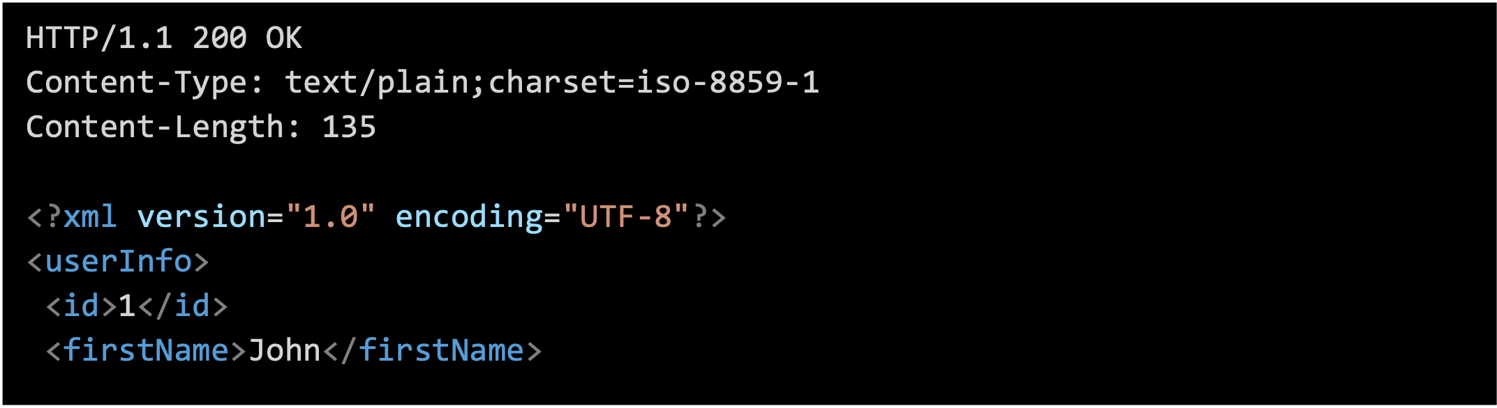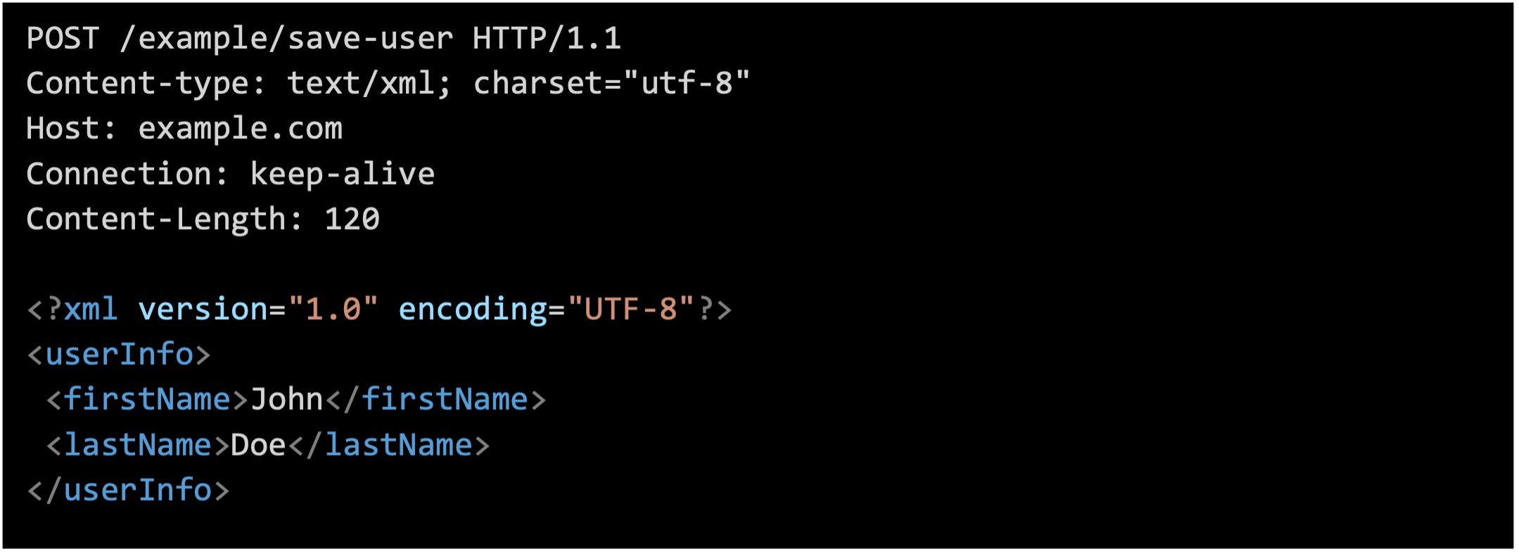 For our example, we a have a web service that accepts an XML payload (as a HTTP request body) and returns an XML payload (in the matching HTTP response body). A legitimate HTTP request/response is expected to look like this.