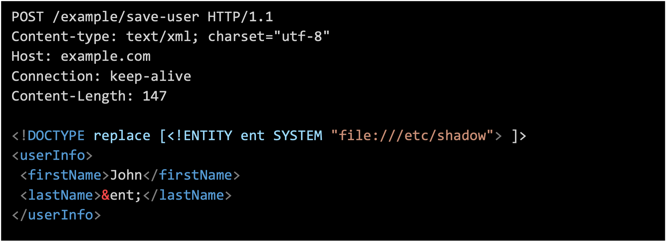 · <!ENTITY ent SYSTEM "file:///etc/shadow">: This defines an entity named "ent" that refers to the content of the /etc/shadow file using the "file://" protocol. In essence, it's an attempt to include the contents of this file into the XML document.